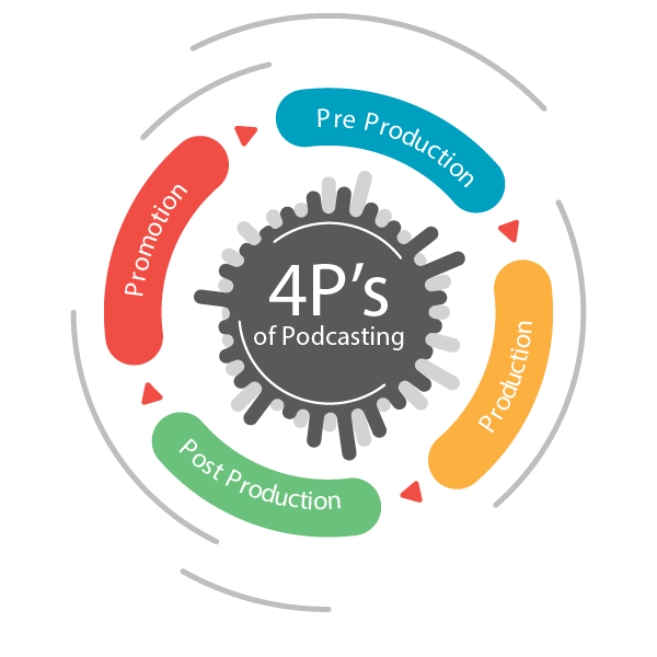 بدءاً من الفكرة وكتابتها مروراً بالتسجيل والهندسة الصوتية وانتهاء بالنشر.